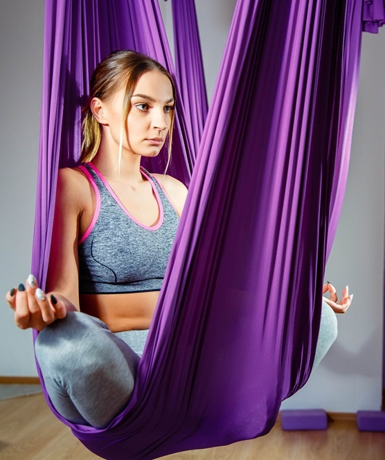 Для регулярной практики подходит йога-гамак: в нём легче работать с раскрытием грудного отдела, мягким вытяжением спины и контролируемой амплитудой в тазобедренных. Подвес хорошо переносится теми, кому некомфортны длительные упоры на колени или запястья. При этом мышцы продолжают включаться — просто нагрузка распределяется более равномерно.